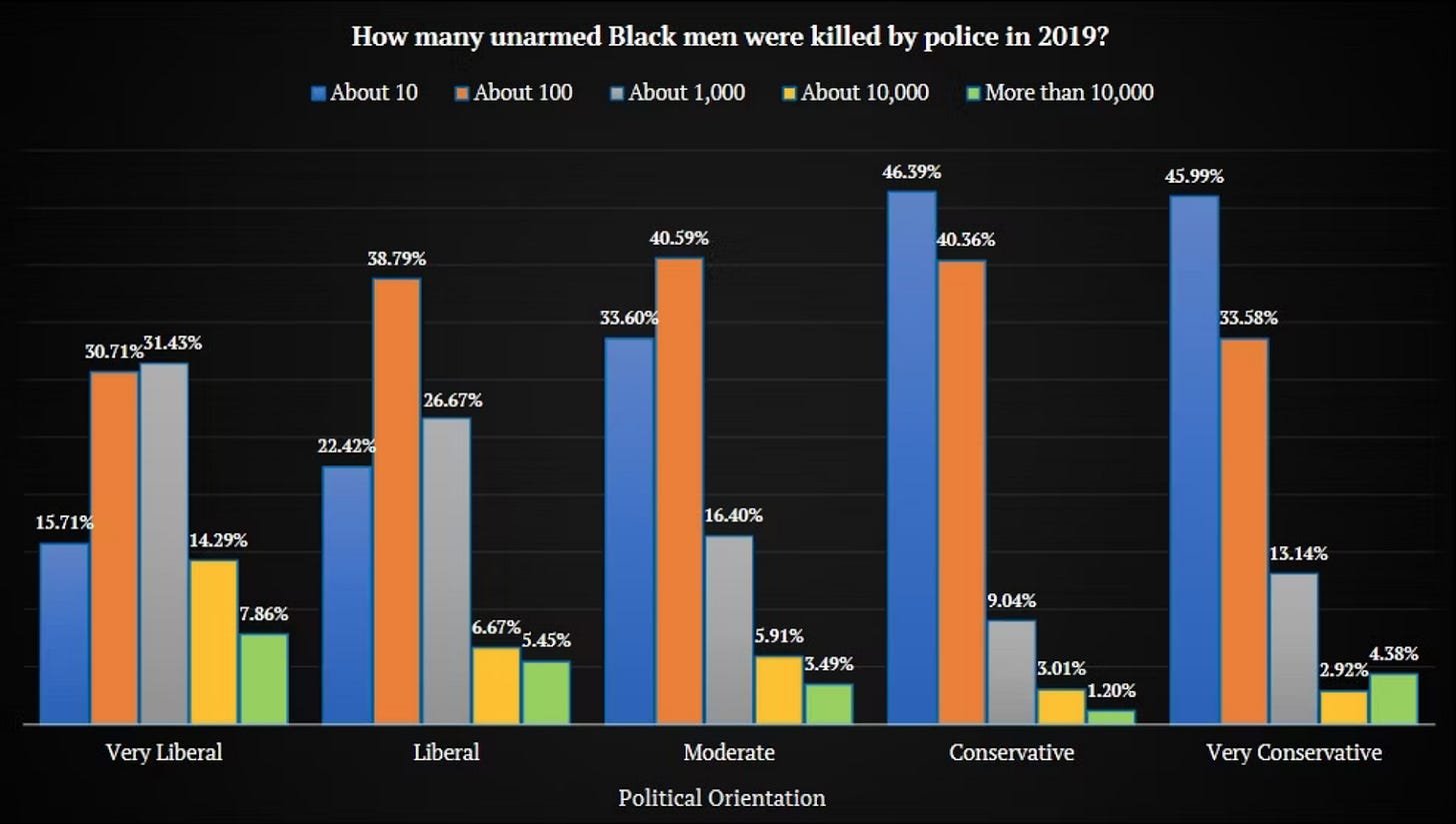 In a 2021 survey, people were asked how many unarmed black men are killed in America every year. Here’s what they said: